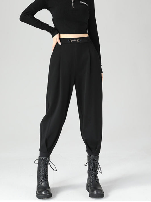 Rebel Buckle High-Waisted Tapered Jogger | Glamour Grove