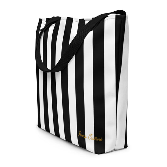 Black & White Mark Stripe Large Tote Bag | Pinup Couture