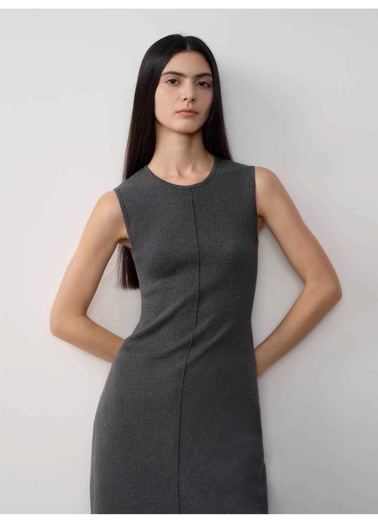 Effortlessly refined and endlessly versatile, the Island Letters Dress is a modern take on timeless minimalism. Crafted from soft merino wool knit, this sleeveless maxi silhouette gently skims the body, creating a long, lean line that feels both polished and relaxed.